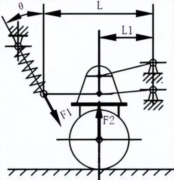 杠桿式減震機(jī)構(gòu)工作原理: